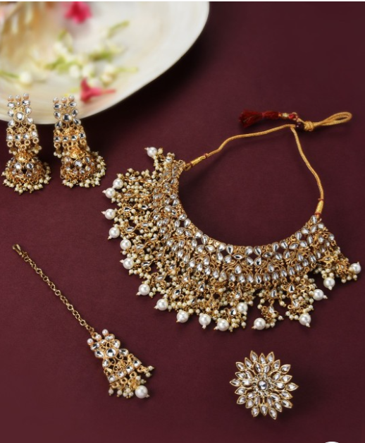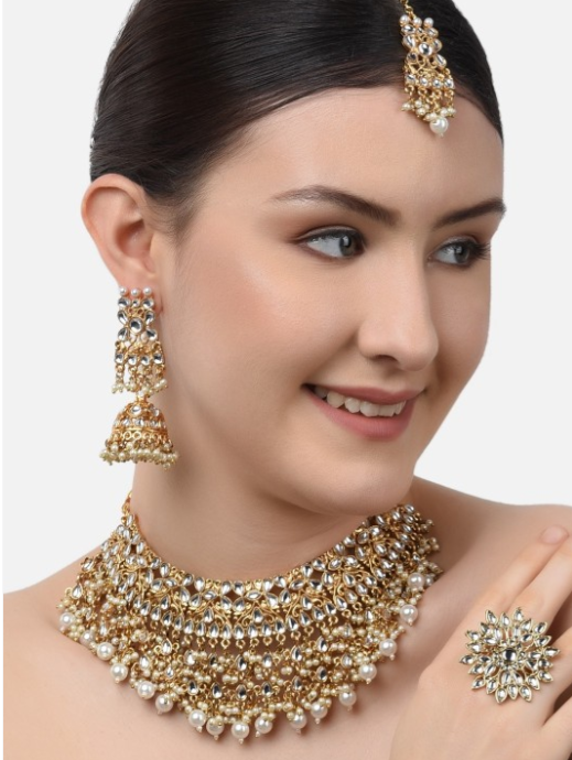 - Elegant Design: Features intricate white Kundan stones set in a gold-plated Jadau design, enhanced with delicate beads.