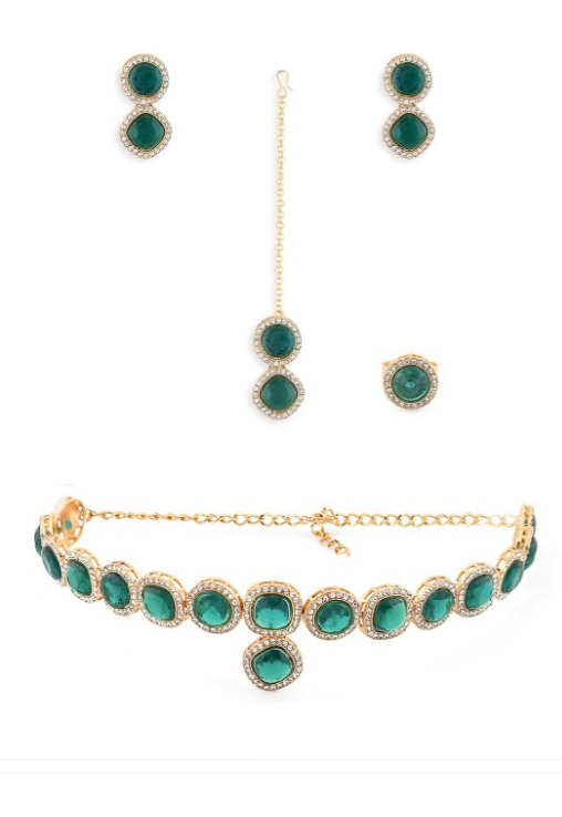 Gold-Plated Green Stone Jewellery Set