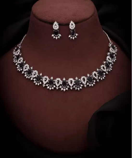 Black AD Stone Studded Necklace Set
